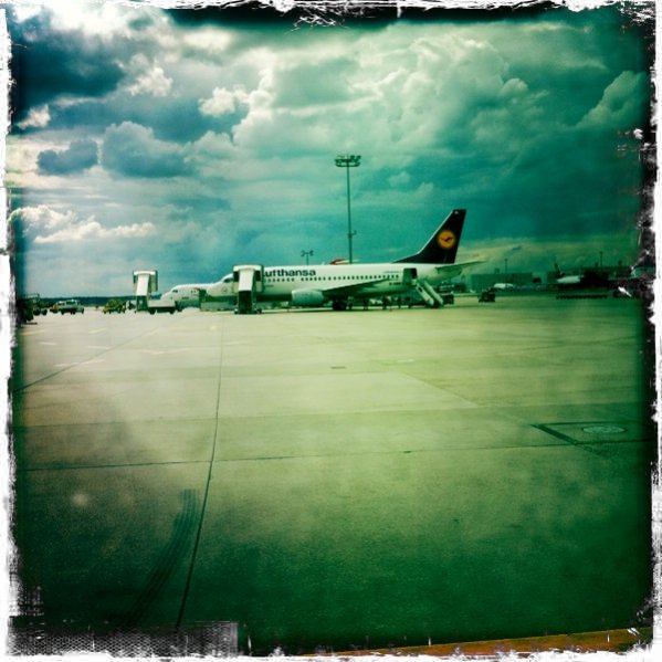 Strax efter 12 så började jag dra mig ner mot avgångsgaten där det visade sig att vi skulle bli cirka 10 minuter sena på grund av sent inkommande flyg. Direkt tänkte jag ”det skulle inte ha hänt med SAS” vilket väl bevisar att deras marknadsföring fungerar som tänkt. När allt väl var klart så fungerade boardingen smidigt, och vi lämnade faktiskt gaten endast fem minuter sena. Planet för dagen var en Airbus A321 som kändes ren och fräsch. Min sittplats precis bakom den mittmonterade toaletten erbjöd gott om benutrymme och dessutom en ledig mittplats. Ombord så får vi en välsmakande pizzabit och jag passar på att prova ett gott tyskt vitt vin. Flygningen till Frankfurt klarades av på lite mindre tid än de beräknade 125 minuterna och vi landade nästan 10 minuter innan tidtabell. So far so good.