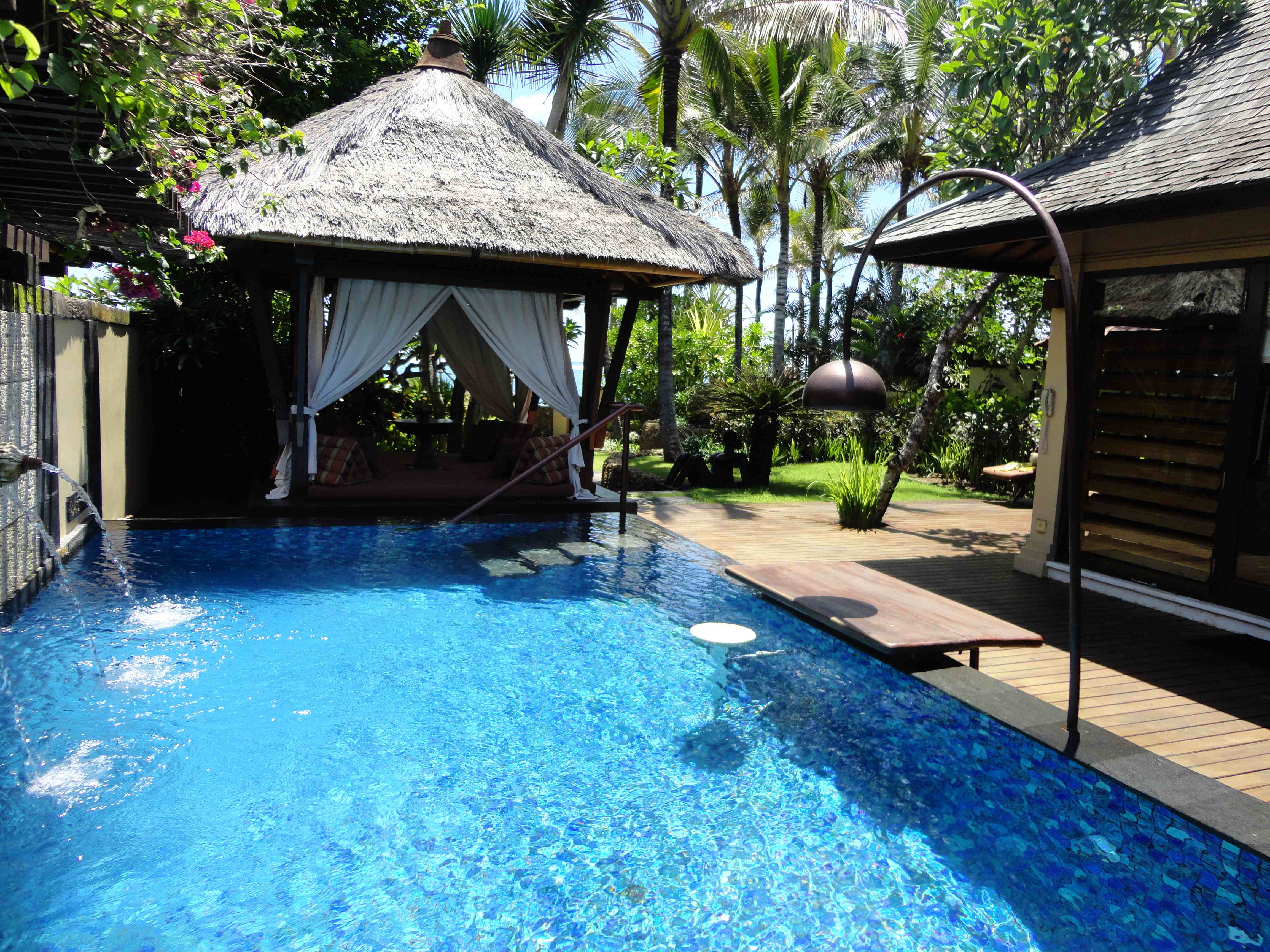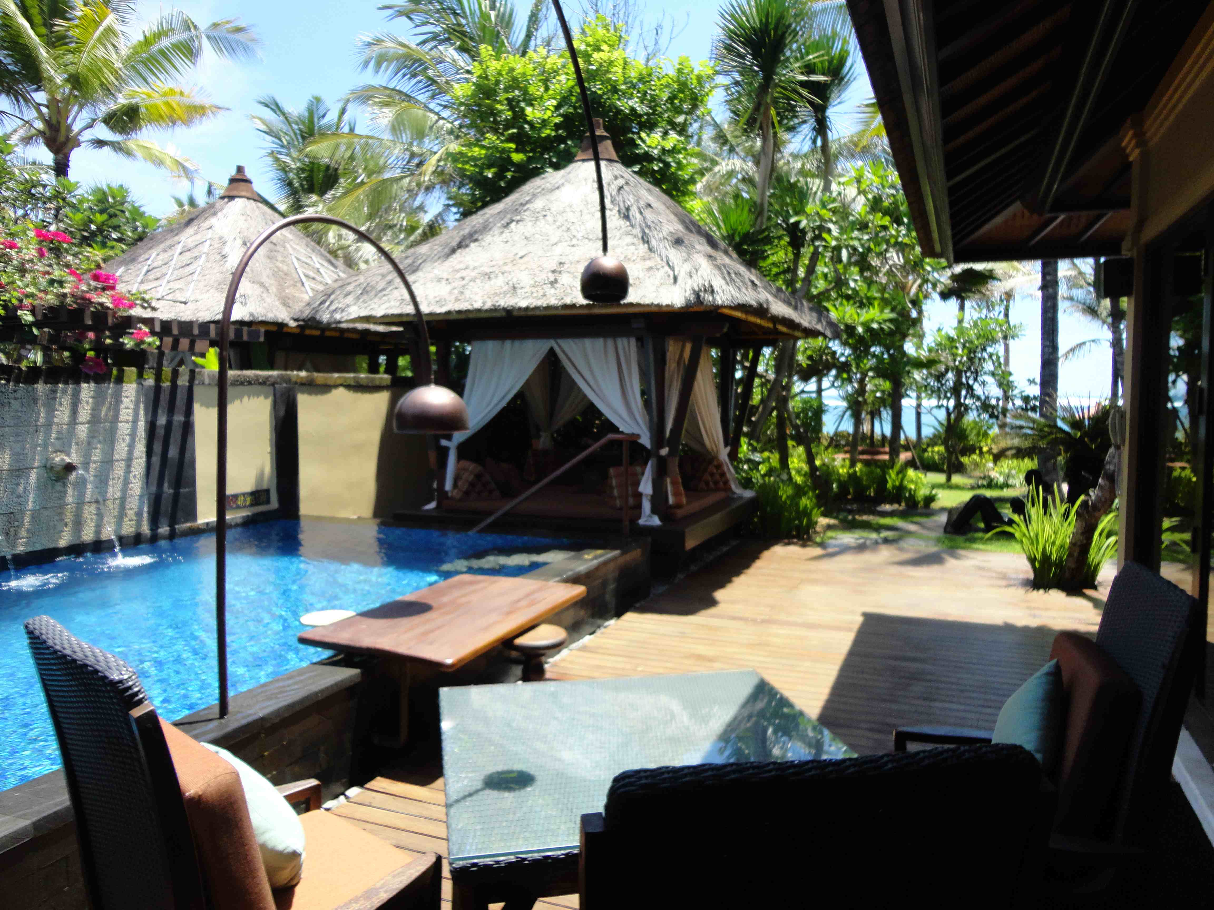 St. Regis i Bali är en av mina favoriter. Det har bara några år på nacken, och allt är mycket fräscht. I mitt tycke slår det med hästlängder det i olika resemagasin bejublade Amanusa (Aman resorts) som ligger på en kulle snett bakom St. Regis. Ett annat mycket omskrivet Bali-hotell, The Mulia, har jag inte bott i, men det ser bara stort och klumpigt ut och lockar inte alls. Försök att få en villa precis vid stranden i St. Regis Bali - dessa villor är väldigt rymliga och har en stor private pool och direkt utgång till en vid och lång strand som är rätt så folktom. Jag bigogar några bilder.