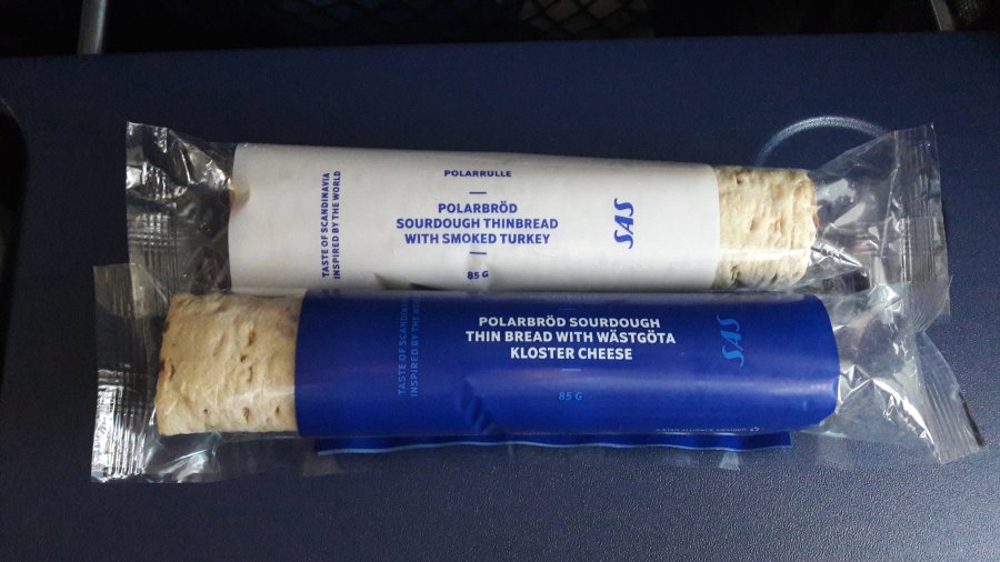 SK410 idag, CPH-ARN. Fresh bite till Plus och rulle till Go. Orkade inte be om rullen. Men oj vad trist laxen med skosulan och det stenhårda riset var.