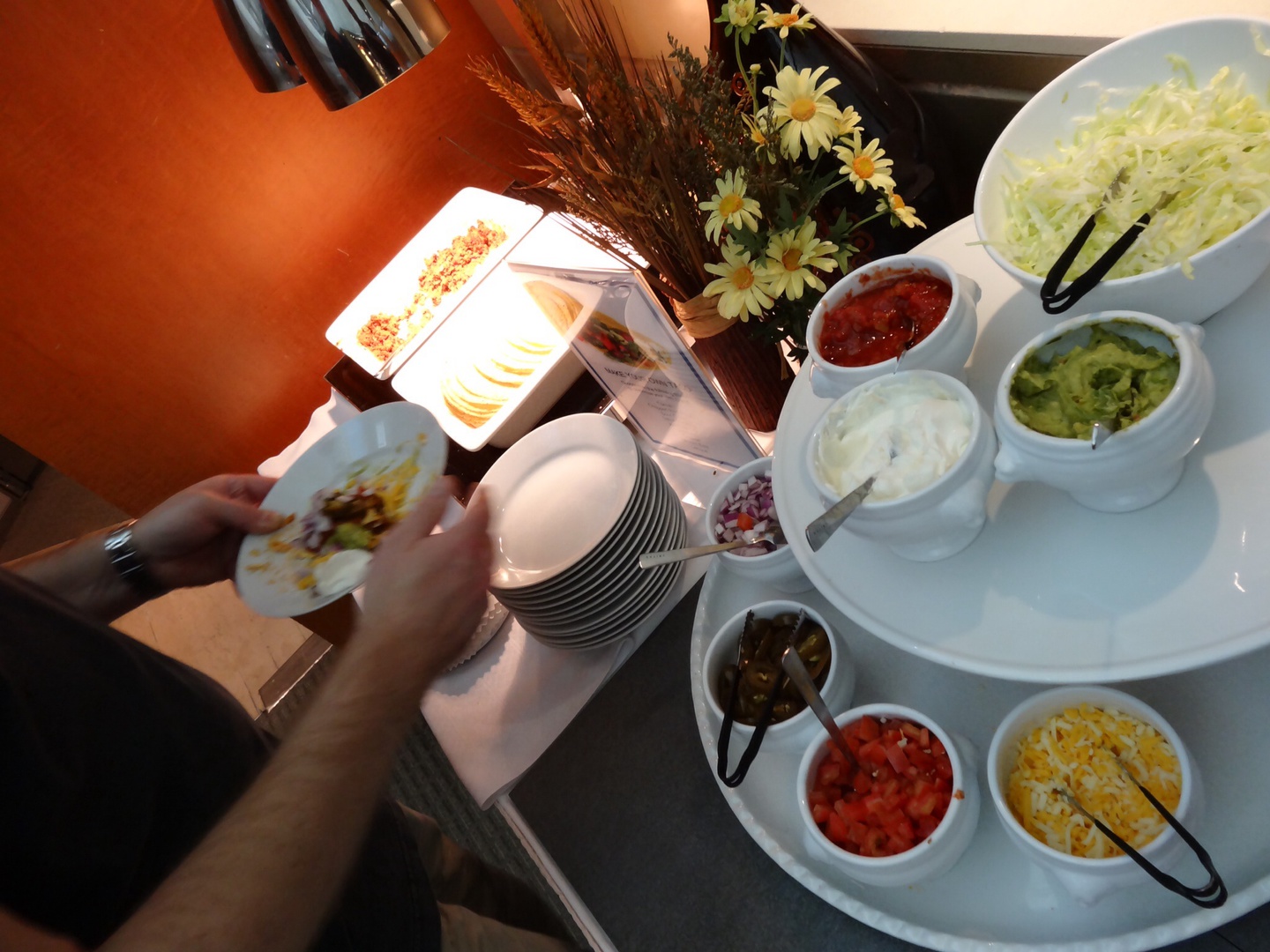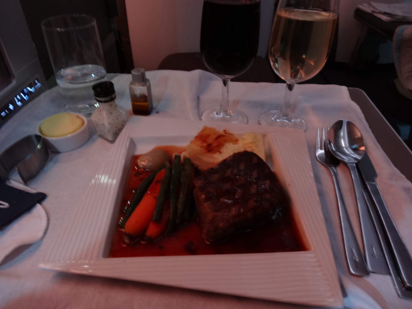 Tyvärr tog en rätt av maten slut efter att vi blev serverande, 5 av 6 passagerare tog det väldigt goda fläskköttet.