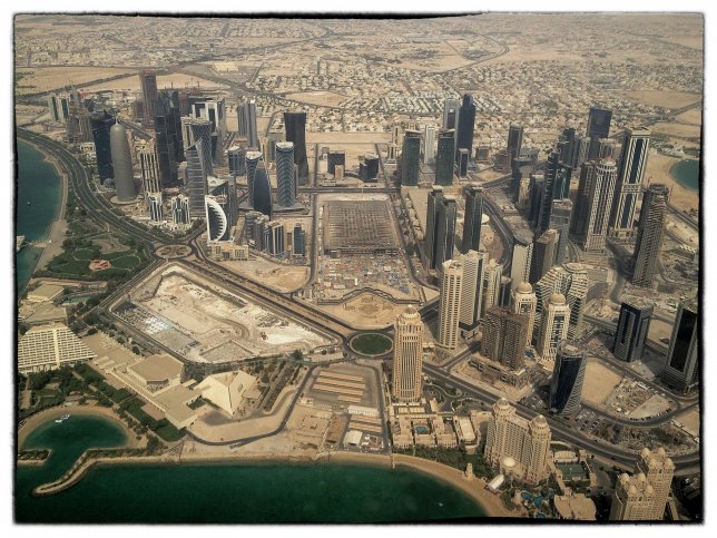 Ja Qatar vann första matchen på poäng. Inflygning med Porsche handlaren till vänster. Buss till business transfer terminalen. Första stoppet var Doha arrival som inte såg så kul ut. Business och first transfer terminal var däremot en annan historia. Rulltrappan upp till en av de största business lounger jag sett. Separat spelrum, massagerum, barnpassning och rökrum förstås. Glasväggar med rinnande vatten. Till vänster en restaurang med buffé, undrar om där inte är en till höger också. Jovisst här finns en mindre japansk buffé och en större österländsk. Längre in hittar jag den italienska delikatessbaren och killen bakom disken pratar italienska också. Jodå det är på riktigt. Taxfree sortimentet en trappa ner var inte lika imponerande. Kollade in lite kosmetika som jag borde köpt i Köpenhamn (det hörs ju på namnet). Något dyrare här och på elektroniken verkade inte heller vara något fyndläge. Åter till loungen, WiFi gratis och fungerade bra. Det gäller att hålla koll på boarding tiden.