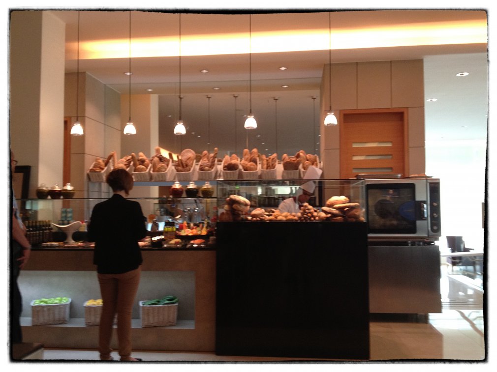 Min stolsgranne denna gång visade sig vara business developer på just Qatar Airways. Egyptier boende i Doha. Kom från Perth vilket jag tyckte var en rejäl omväg. Men Qatar öppnar upp Perth inom några veckor med 3 flyg i veckan. Intressant samtal om flygbranchen. Qatar började 1994 och satsade på sitt premium koncept från och med 1997. Bland annat påpekade han att man är ett av de få flygbolagen som i economy på trippelsjuan har konfigurationen 3+3+3, de flesta kör 3+4+3. Man har också valt att starta linjer till mindre vanliga destinationer i östeuropa som Baku och Tiblisi. Vidare håller man på att bygga ett nätverk i Afrika. Tolv destinationer i Indien. Som nyhet kommer man att flyga på Helsingfors innan året är slut. Medelåldern på flygplansflottan är 4 år och 80 st 787 är beställda och 13 st A380. Han frågade mig om jag hade några förslag på förbättringar. Hade inte mycket att komma med (vågade inte ta det där med croissanterna) förutom att det vore bra om Qatar var med i en allians. Men då skakade han på huvudet. Det verkade som andra flygbolag inte är så förtjusta i en uppstickare som Qatar Airways. Han menade på att Qatar de sista 2 åren har visat svarta siffror. De väntar nu på sina 787or för att öka komforten och linjenätet. Sov sedan sött och vaknade utan frukostskrammel. Frukost precis innan inflygningen till Doha, senare än de flesta då jag låg kvar på europeisk tid. Full rulle i loungen med tre stycken frukost bufféer på gång samtidigt, continental, italiensk och österländsk. Thé bar med ett stort antal sorter, samt bemannad Nespresso bar. Eluttag av europeisk standard, Wifi hyggligt snabbt.