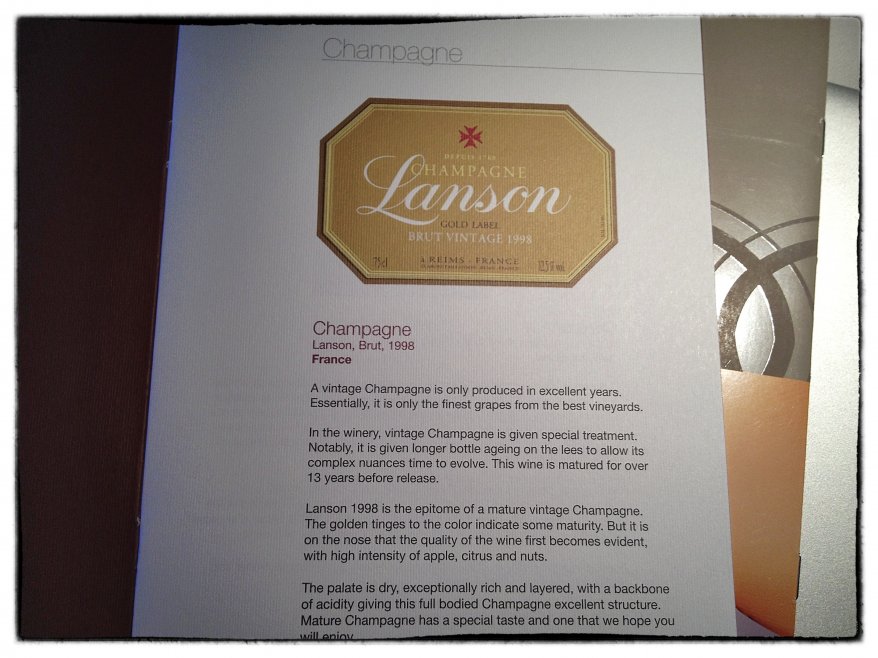 Boarding och den gamla favoriten Lanson 1998 fick snabbt skölja halsmandlarna. Jag skall inte trötta ut er med maten och service på hemresan. Men den var lika inviduell och lika bra. Inget synkront ätande utan var och en när man kände för det. Välj fritt bland rätterna. Tallriks servering genomgående och vin on demand. Gick igenom hela sortimentet. En ny favorit i Bordeeaux St Emilion Grand Crus Chateaux Monbousqouet 2006, 90 poäng av Parker. Fungerade fint till lammracks som huvudrätt. Släppte på bromsarna med en 15 årig Glenfiddich Solera till macchiaton. Hade då redan avnjutit portvinet från 1974 till ostarna. Italienskt kaffe på hög höjd fungerar dock inte riktigt klockrent. Pyjamas i medium storlek var slut så jag fick ta small den här gången. Allt är inte perfekt i himlen.