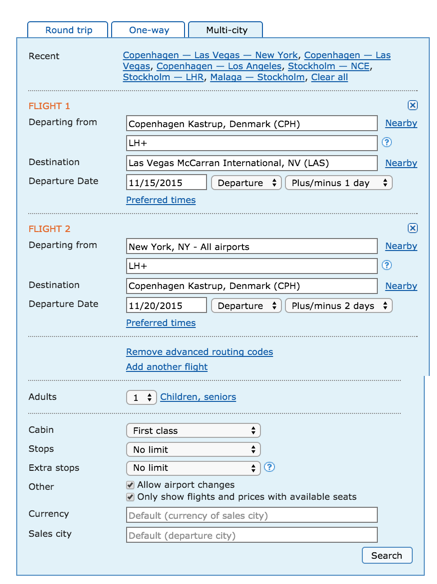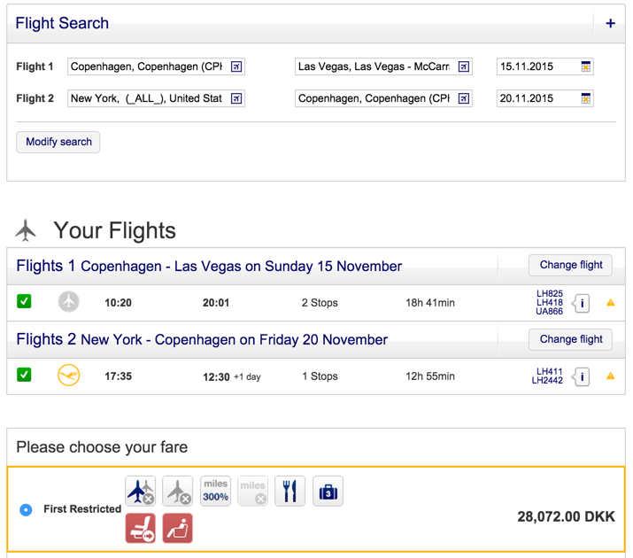 Det er en mycket interessant konferans i Las Vegas for de som er ekte flygnördar 17-19 November og jag har fått ok från Il Duce att åka. Söker derfor en resa som ger meg (a) mest njutning pr krona och (b) flest eurobonus poeng.