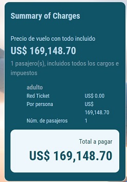 Pris hos argentinska Kayak $279096, men det verkar inkludera någon skatt för boende i Argentina (?) på $169149, vilket gör att priset utan skatt borde bli $109947