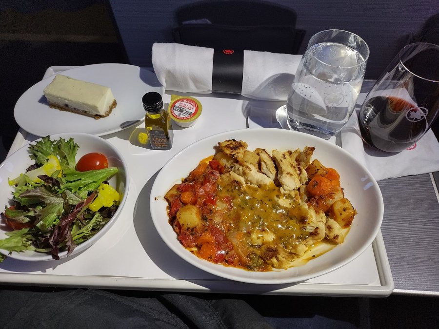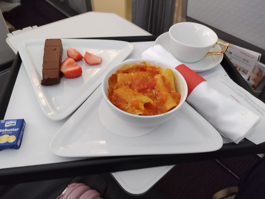 God dessert men varmrätten var inget vidare, pasta med tomatsås. 2 rader affärsklass, gardinen halvöppen och några gick fram.