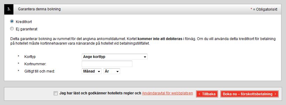 Försöker boka ett vanligt standardrum, dvs inget pre-paid, och när jag ska klicka där det brukar stå "Bekräfta bokning", så ser det ut som på bilden.