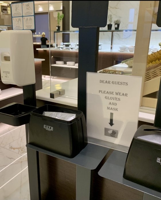 Sprit, mask och handskar till frukosten. Mask inne överallt och av all personal hela tiden, t o m ute. Mask i samtliga taxi bilar jag åkt. Avstånd mellan bord. I princip alla följer dessa regler.