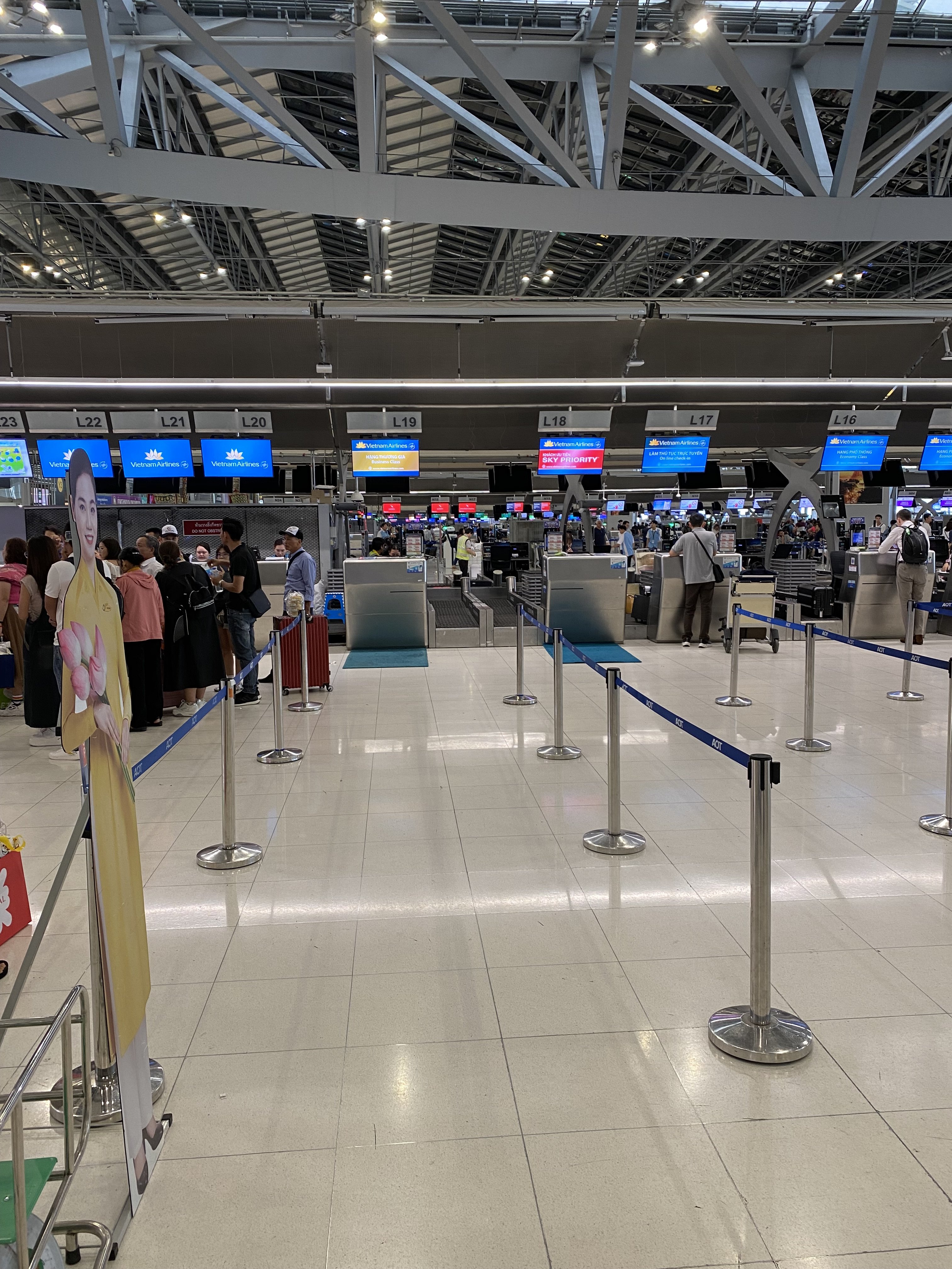 På L är det Vietnam håller till. Uppmärkta och tydliga skyltar. Finns även personal som kommer fram och kolla om man är behörig för Sky priority.