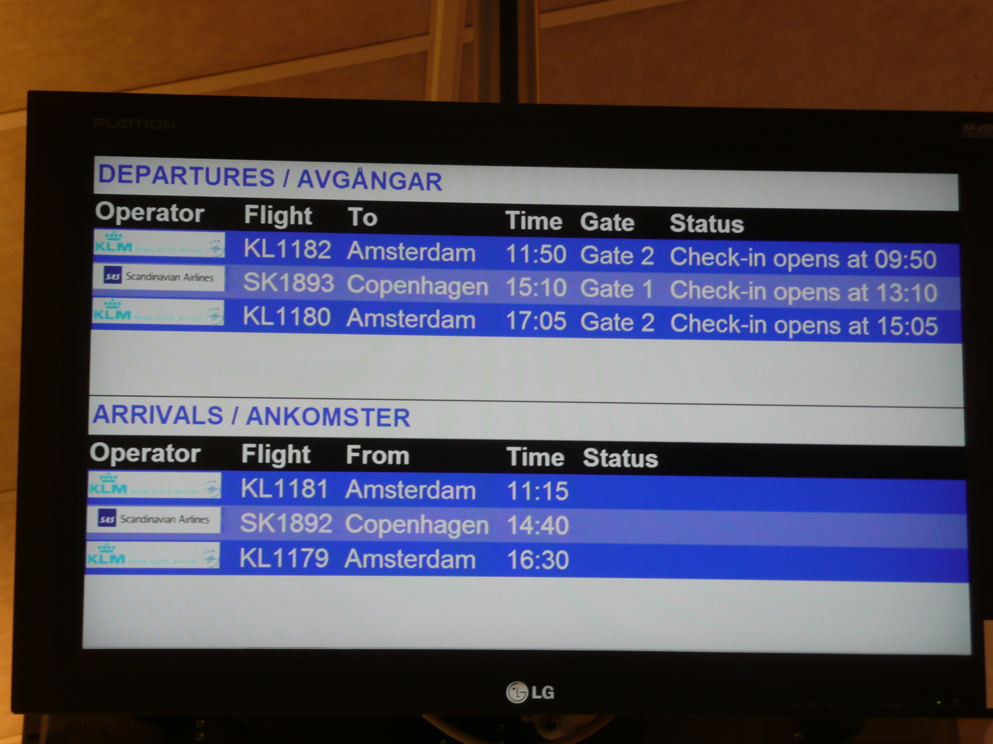 Vi var i mycket god tid på flygplatsen i Linköping. Tanken var att slå ihjäl en dryg timme i restaurangen innan vi skulle kliva på planet, men då både jag och Pappa hade missat att det var röd dag så kunde vi glömma detta. Restaurangen var stängd, jättestängd. Detta lilla problem löstes med taxi till centralstationen för kaffe och folköl. (!) En timme senare åkte vi tillbaka till flygplatsen och checkade in vårt bagage. Vi förklarade för den oerhört trevliga personalen på LPI hur läget var, att detta var en överraskning till brorsan. Detta hemlighetsmakeri var de med på till 100% och ingen röjde vår slutdestination.