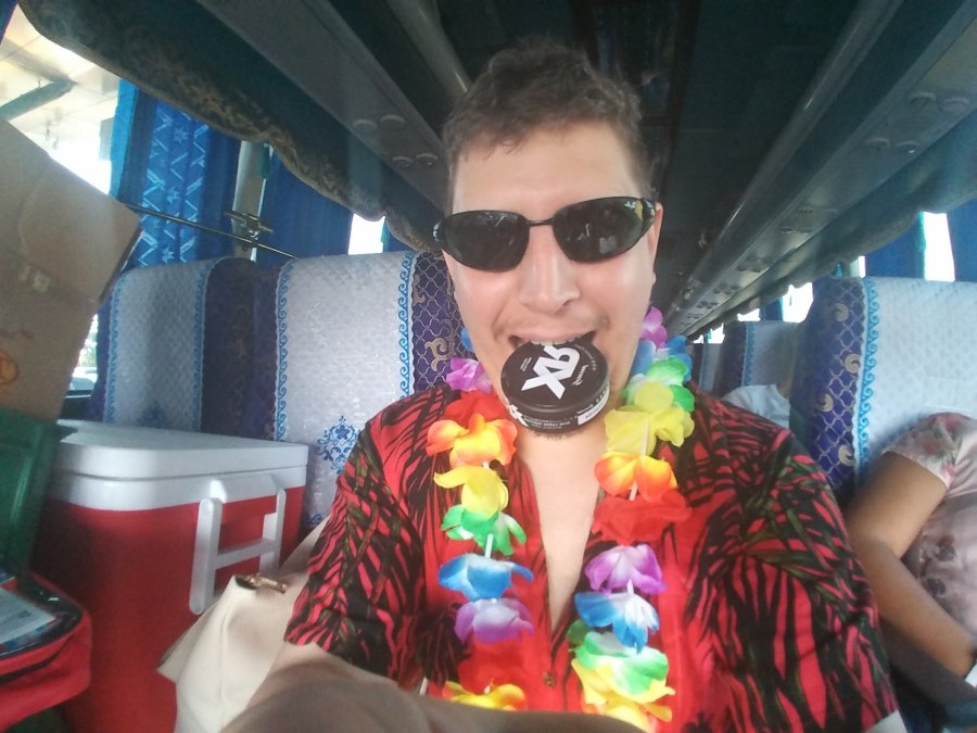 Dessutom så gör det inget om vi har mötande trafik när vår busschaufför kör om eftersom störst går först!