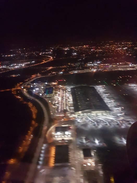 Vi blev aningen sena ut från Heathrow då vi behövde bli avisade. Flygningen blev väldigt bra med bra service och lite fika hans med.