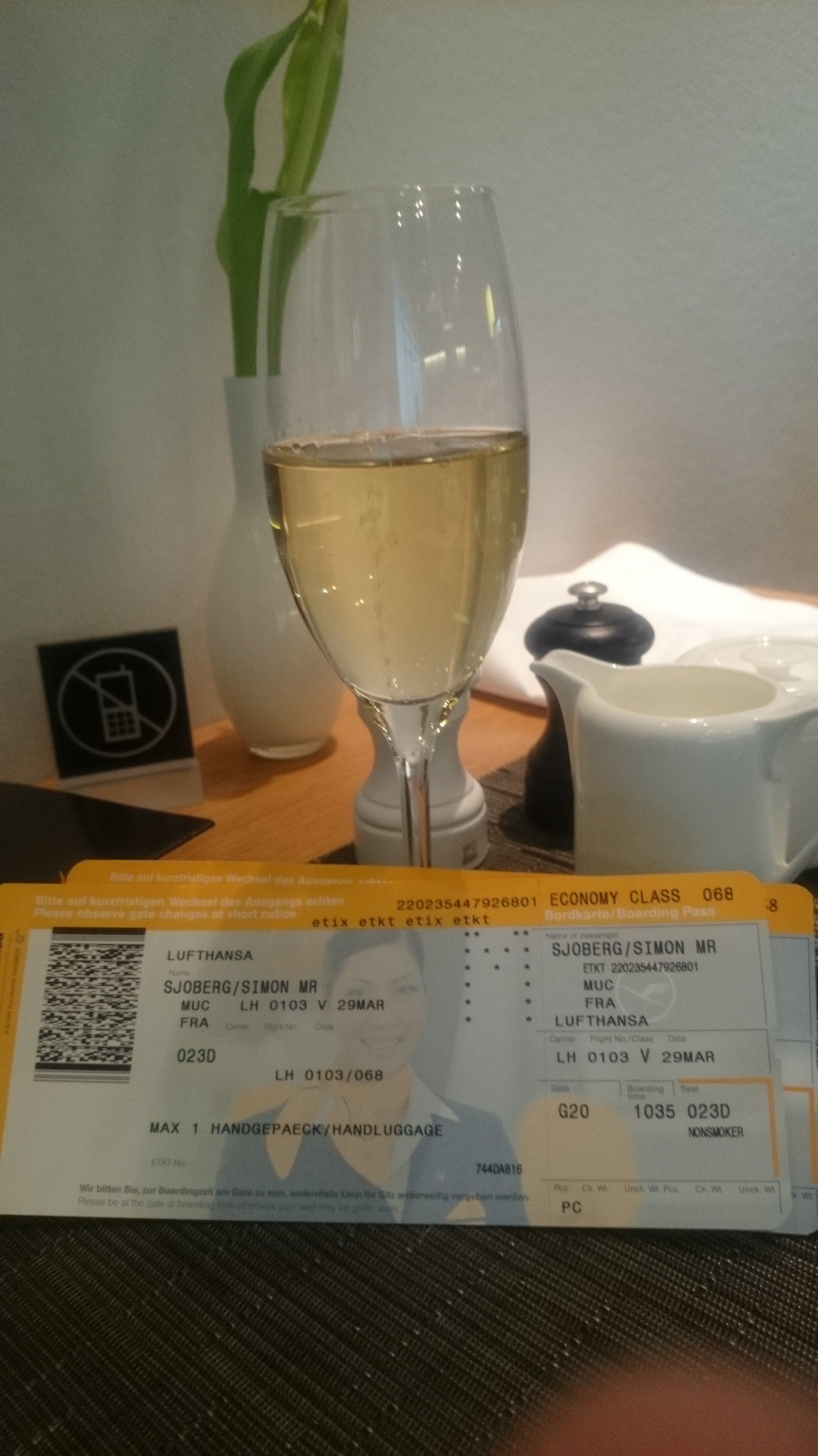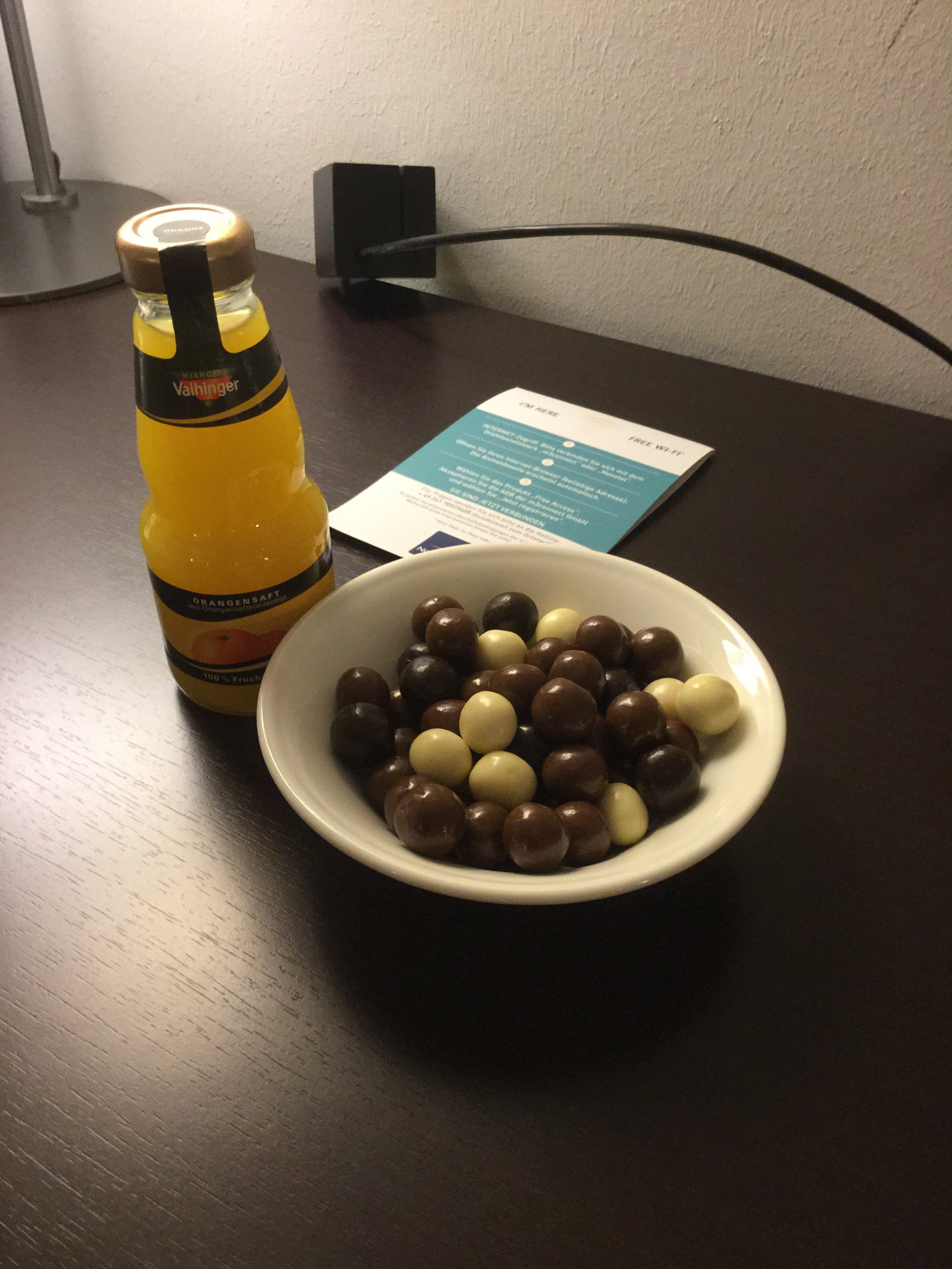 Nu incheckad på Novotel Munich airport. Uppgraderad till ett executive room på högsta våningen med fri minibar och tillgång till Loungen.