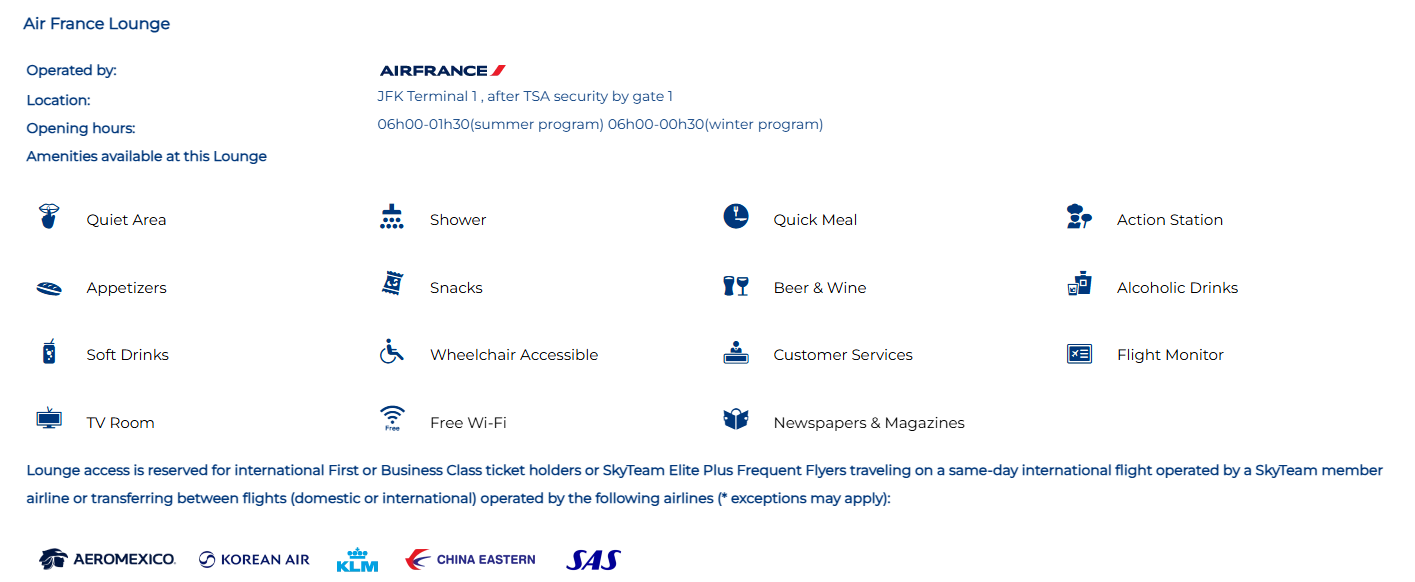 Det BORDE räcka med att flyga business oavsett status. Men SkyTeam verkar vara omgärdat av hittepåregler. Så här står det på SkyTeams (havdåliga) loungefinder för JFK: