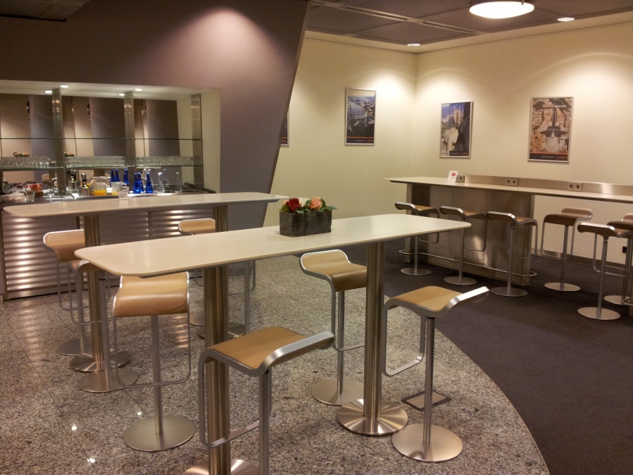En separat del av loungen där det fanns en själserveringsbar och möjlighet att arbeta med el-uttag.