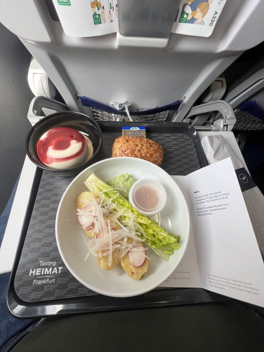 Håller med, vi fick denna både GOT-MUC och MUC-GOT i förra veckan. Efterrätten var OK, och att dricka i glas-glas och få maten (?) på porslin med riktiga bestick är ändå trevligt.Fick denna Heimat Frankfurt förra veckan mellan FRA-ARN