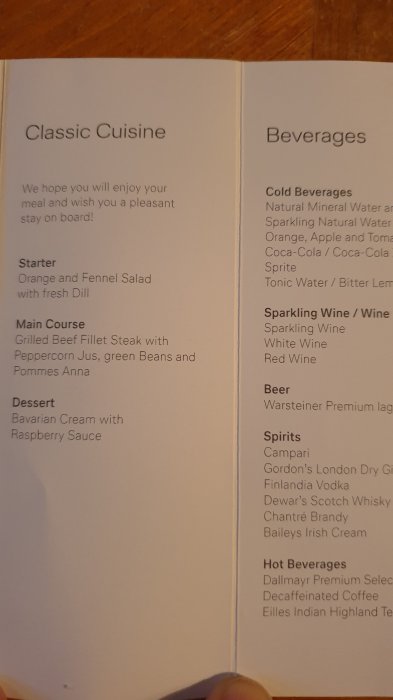 Om man dessutom förbeställer "`a la carte" så får man en högklassig måltid serverad på riktigt porslin!