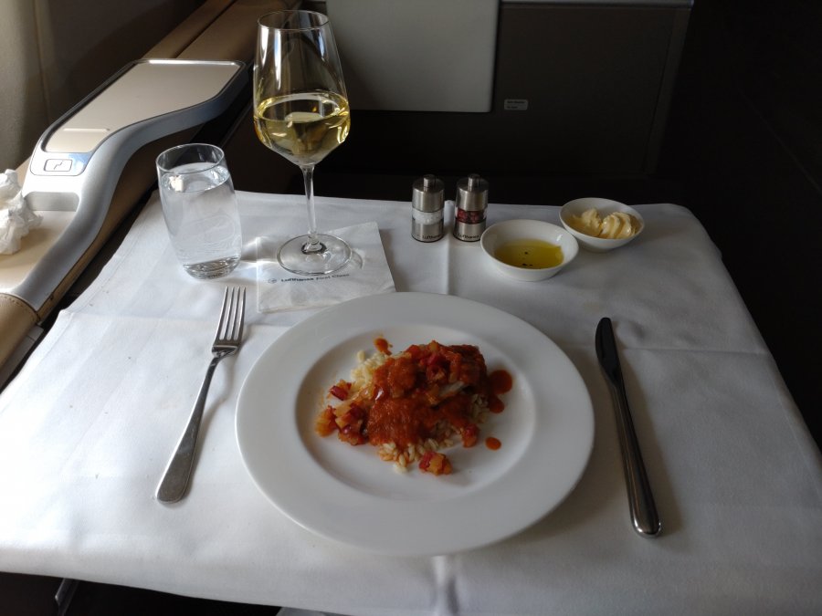 Flygvärdinnan hade en skön attityd och var så mysig i sitt sätt. Med lätt sjungande ton ”We are so glad to be back!” apropå att Lufthansa inte erbjöd First Class när pandemin var som värst eller om de så gjorde i så fall med avskalad service.