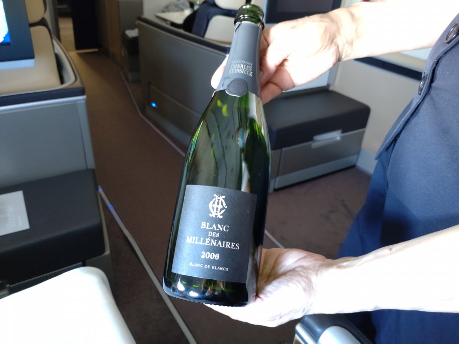 Efter all mat mörklades kabinen och det blev några timmars vila. Fast jag tog inte på pyjamasen. Den kom väl till pass på hemvägen i Swiss Business. När man piggnat till var det dags för andra serveringen. Funderade på deras Royal Brackla 21-åriga whiskey, men avstod. Det blev mer skumpa i stället. Tanken nu var att testa deras Laurent-Perrier Alexandra Grande Cuvée Rosé 2004 (kostar knappt 3 000 kr/flaskan). Flygvärdinnan veckade pannan och undrade vilken flaska jag menade. Jag pekade i menyn, men den fanns inte ombord visade det sig. Hon kom tillbaka med den här babyn i stället : )