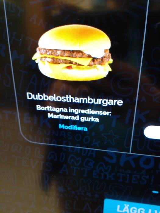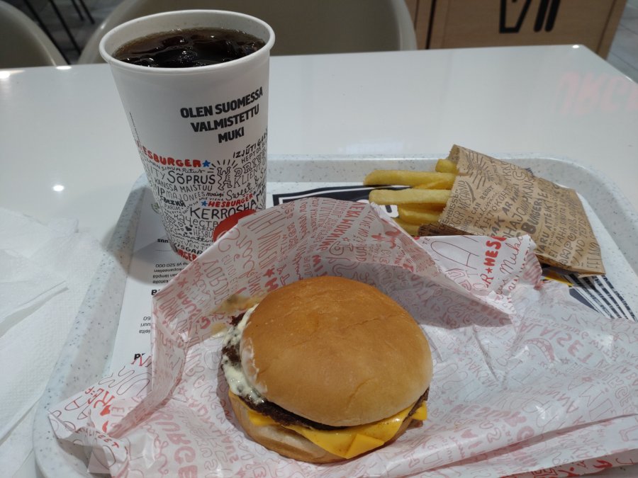 Så, nu äntligen lunchdags. Idag föll valet på en dubbelosthamburgare (utan marinerad gurka). Givetvis lika välsmakande som planerat.