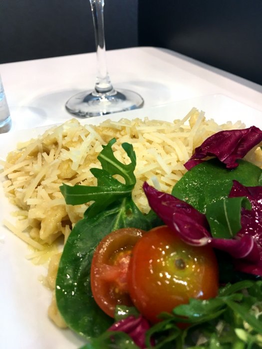 Här intogs bland annat en portion Käsespätzle och en anständig Sauvignon blanc. Bra lounge, lugnt och tyst trots viss eftermiddagsrusning.