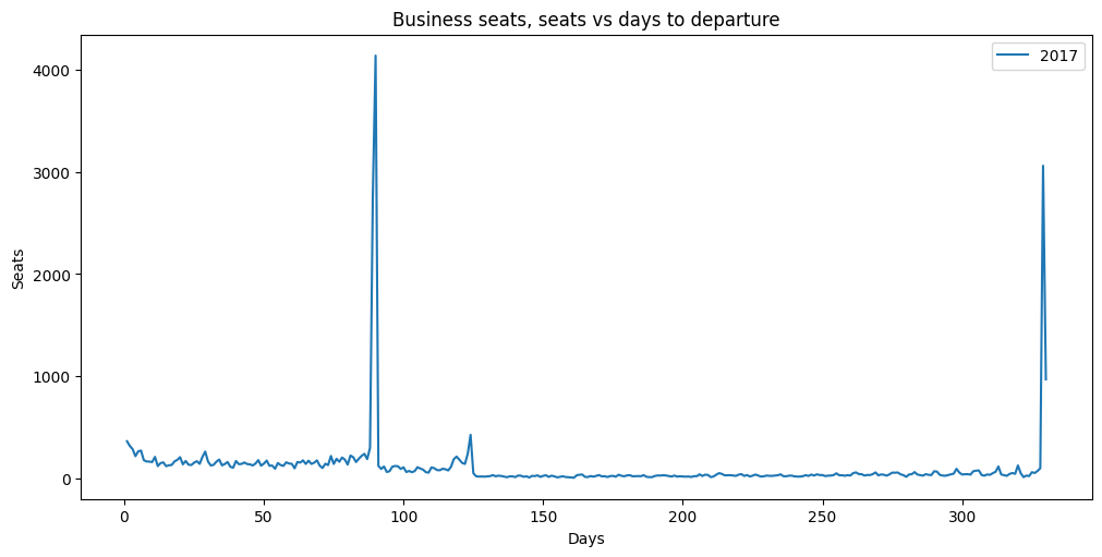 För business och Go ligger spiken på 33-34 dagar. Plus och Go släpps ofta vid 59-60 dagar. Det är oförändrat så att det aldrig släpps mer än 2 C-säten innan 125d. Men möjligheten att boka för >2 med framförhållning är som sagt sämre nu när mycket flyttats från 125 till 34d.