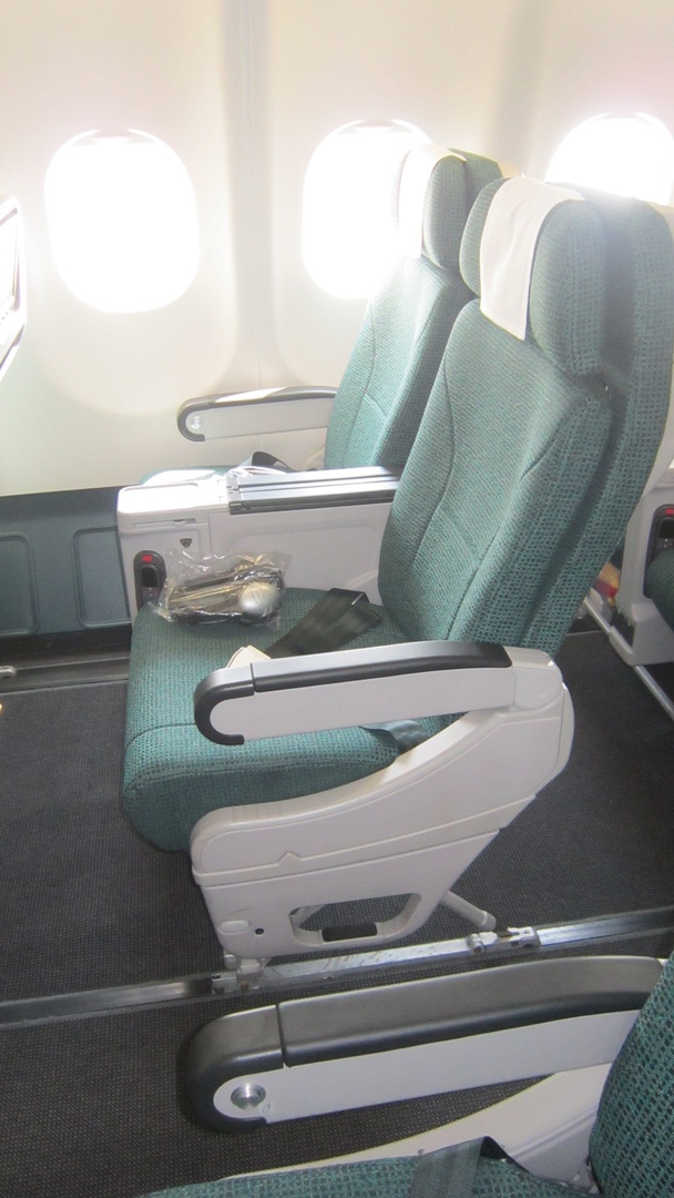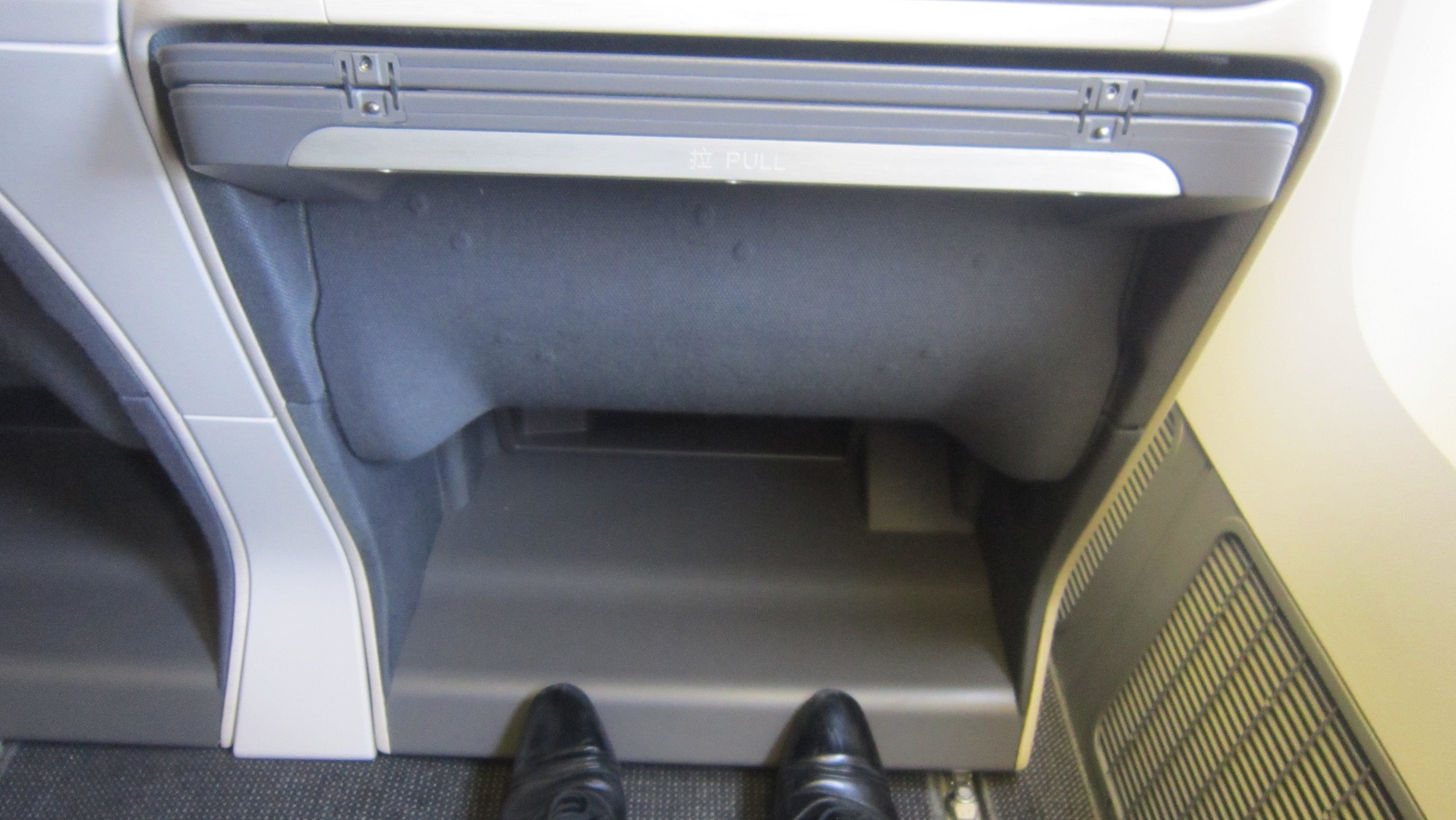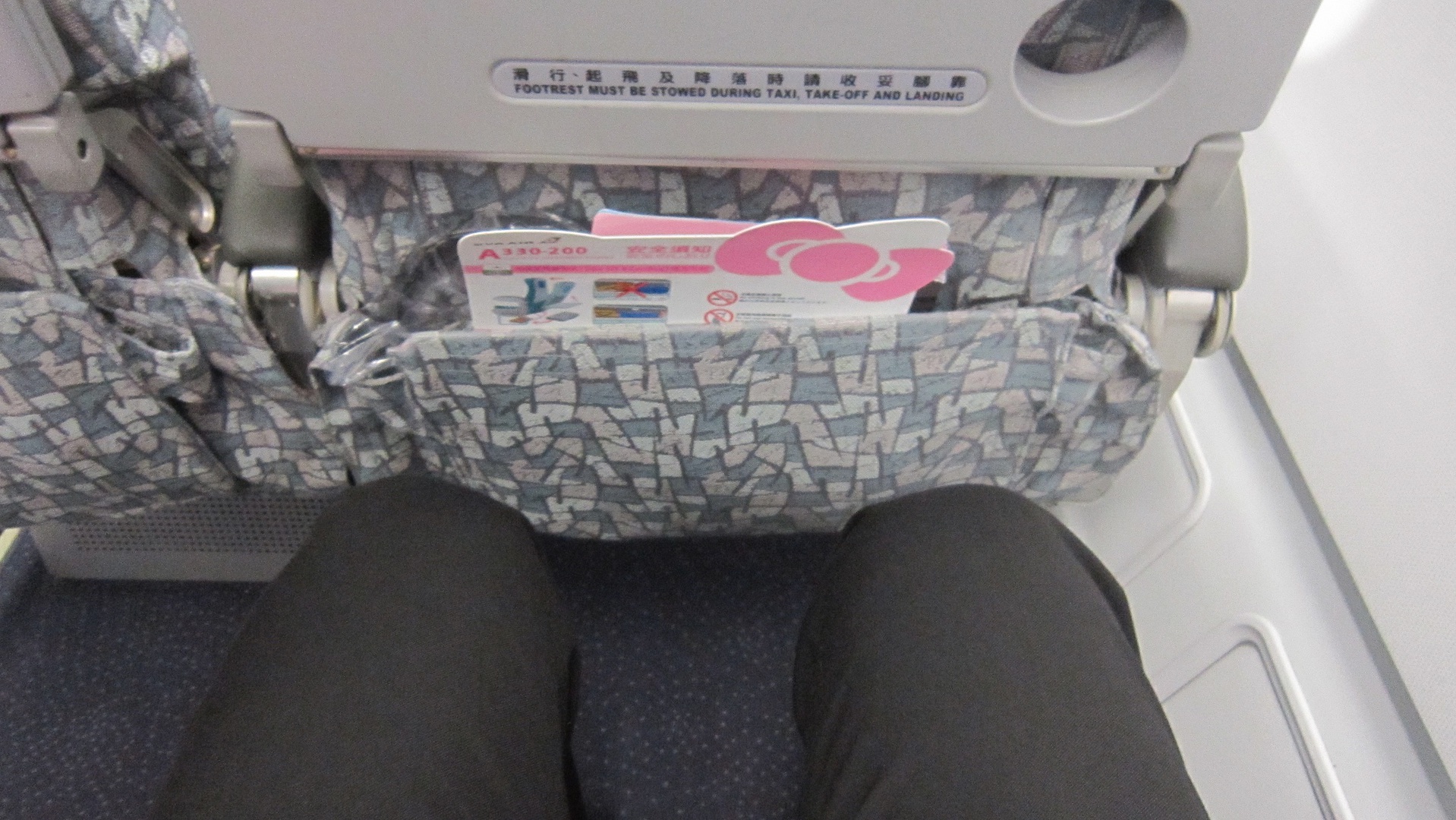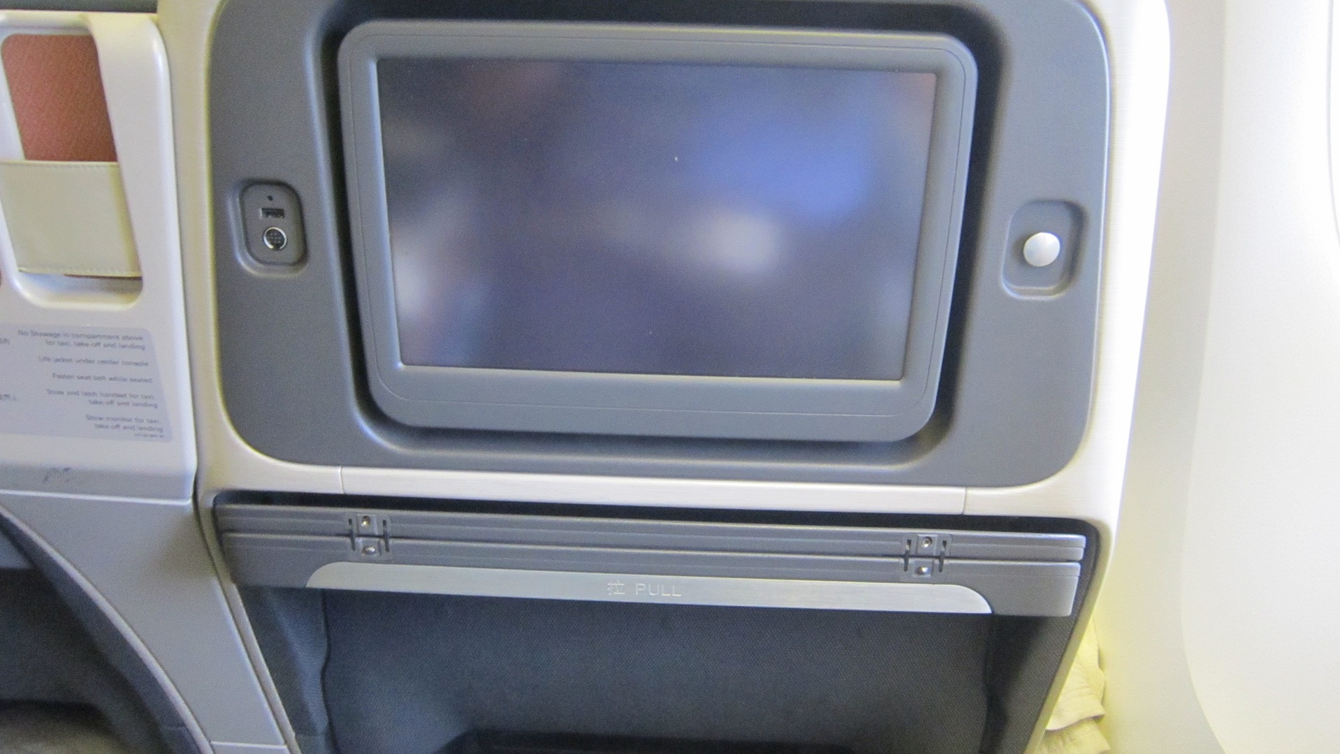På flygningen till Taipei fick jag som sagt var möjlighet att testa Cathay’s nya regional business produkt och i jämförelse med den gamla var detta en trevlig bekantskap. Stolen är en skalstol, dvs man lutar sig inte riktning mot bakomvarande passagerares knä, utan stolen glider framåt. Testade att fälla den max och konstaterade att det skulle nog fungera alldeles utmärkt att sova sittandes i stolen. Så som ”recliner” fungerar den utmärkt, men den kan ju inte jämföras med en stol som kan fällas helt plant.