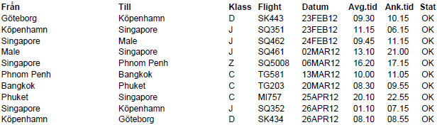 Vi betalade 56.000/PP inkl.skatter för flygbiljetterna i businessclass.