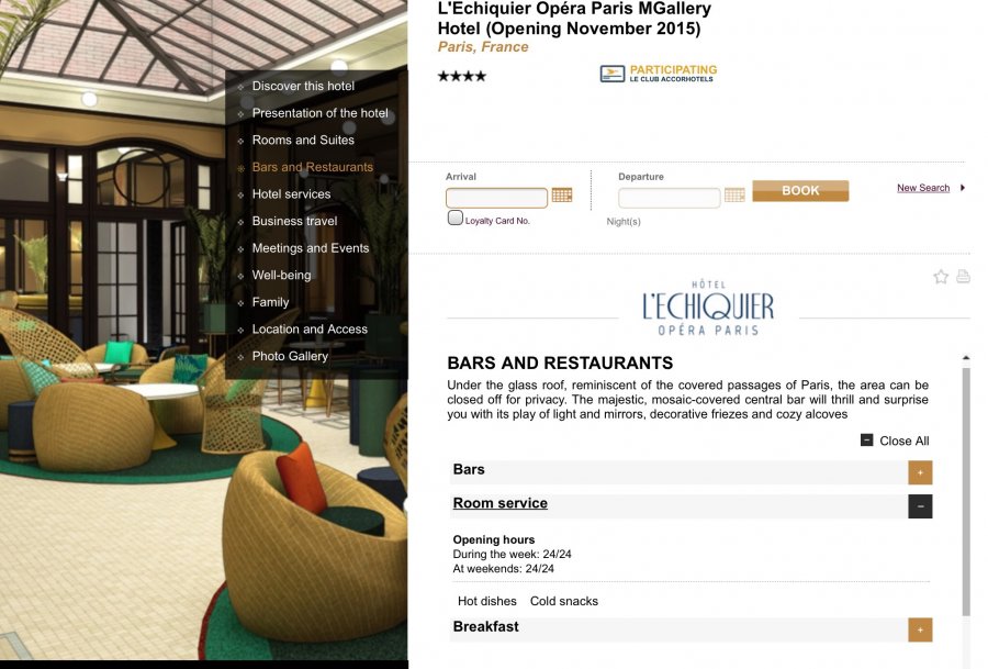 På hemsidan står det att room service skall finnas dygnet runt, samma står även i informationsboken på rummet. När man försöker ringa till room service kommer man inte fram och någon fras enbart på franska babblas, sen läggs samtalet automatiskt på.... Ringer till receptionen och kommer inte fram där heller... Får går ner och fråga och får svaret: well sir, it must have been what you call it? A missunderstanding...... You see the bar closes at 23:00 and also the restaurant.