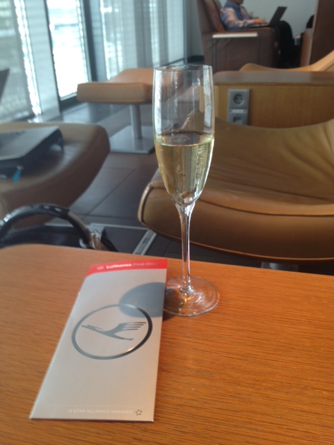 Vänner, då har man hittat till det som kanske är "The Holy Grail" inom markservice i flygvärden; den ökända Lufthansa First Class Terminal i Frankfurt. Detta är mitt andra besök, och det är svårt att inte bli imponerat över standarden på helhetsupplevelsen. Sitter nu och njuter ett glas med skumpa, medan BvM springer omkring och säger: "this is frickin awesome". Han verkar ha fastnat i Cigar Room. Själv sitter jag med min bärbara dator i knäet och försöker se seriös och professionell ut då (tyvärr) jag har fortfarande en del arbete att göra.