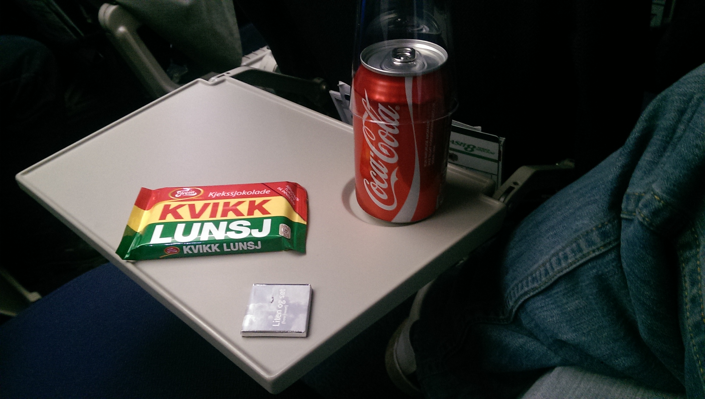 Widerøe bjöd på en chokladbit, misstänkt lik den som NSB även bjöd på.