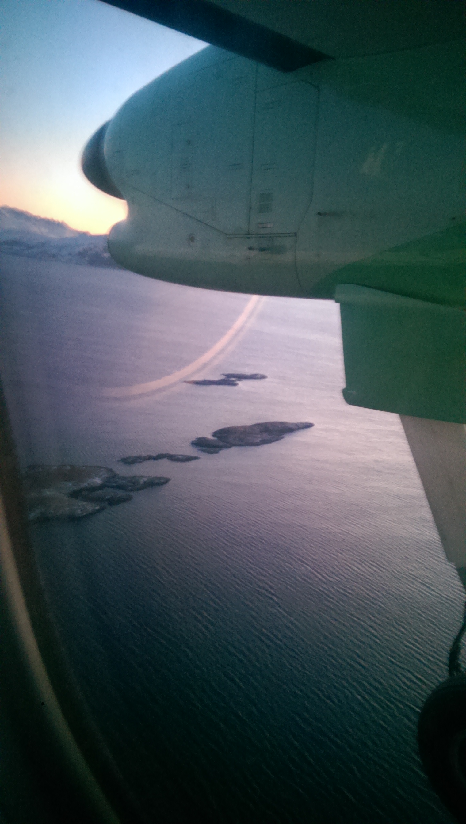 För den som inte har flugit insikter i Norge, så kan jag verkligen rekommendera detta! Vilken naturupplevelse det är att få se de vidsträckta fjällen och djupa fjordarna från en lagom höjd. När vi väl hade kommit utifrån flygplatsen så tog vi en taxi in till centrala Bodø och ett väntande rum på