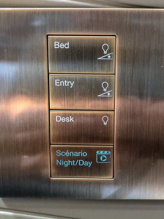 Smidigt med knappar som styr all belysning och det fanns även fjärrkontroller till mörkläggningen för takfönstren.