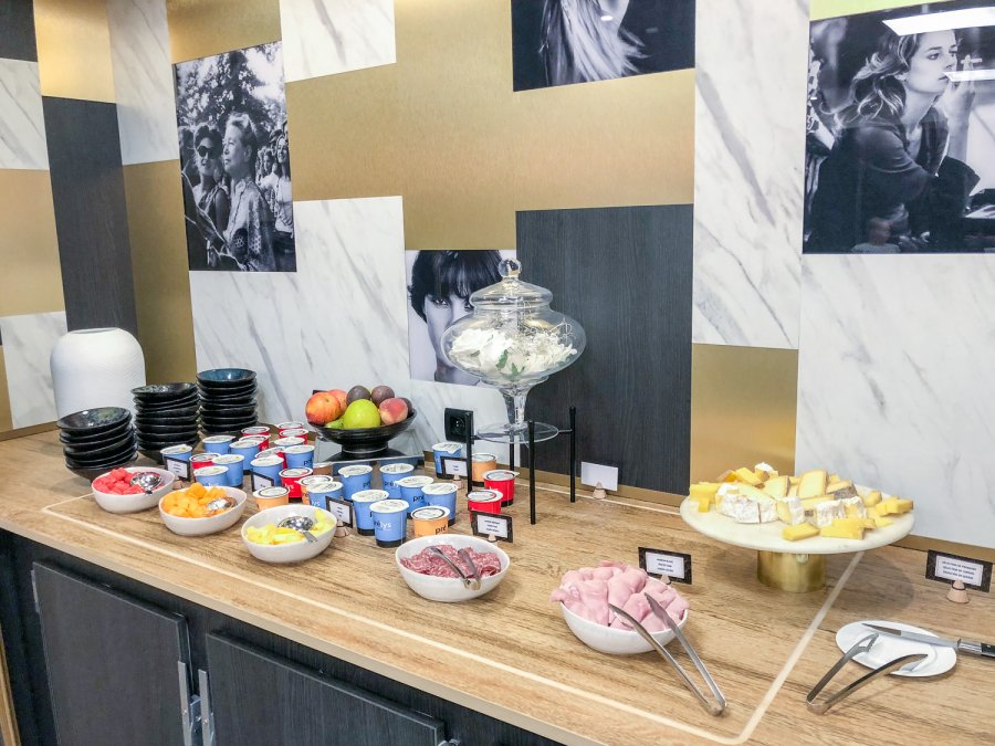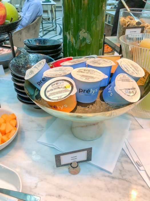 Frukosten serverades i restaurangen en halvtrappa ner. Det var endast buffé vad vi kunde se de två dagar vi åt där. De valde att duka upp frukosten i olika rum lördag respektive söndag. Innehållet var dock detsamma båda dagarna.