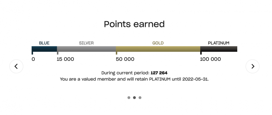 Så sov 1 natt få 5 mot status. Bor man 12 nätter så får man Platinum.