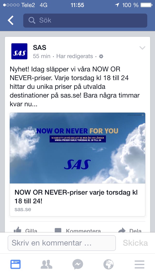 På SAS Facebook meddelas att flygbolaget varje torsdag 18-24 kommer att släppa "unika" priser till utvalda destinationer.
