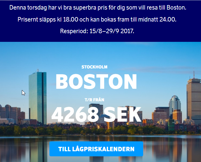 Verkar vara Boston från Arlanda idag (dock kort resperiod):