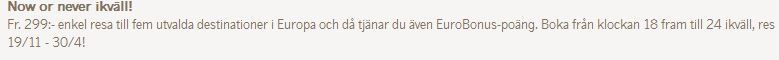 Nu kanske inte de nya destinationerna ligger uppe för kl18 på svenska sidan men just nu är det väl samma som förra veckan?