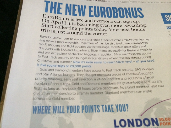 Det viktigaste för mig är förändringen av uttag av bonusresor på long h. Som det är nu är det ju anus att få ngn bonusresa till Bangkok med SAS. Vad skall man göra med sina poäng?