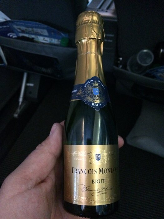 Jag noterade att det är ett nytt mousserande som serveras i Plus/Minus. På överresan till LAX är jag ganska säker på att vi serverades Bernard Massard ur storflaska i Plus. På returen i Go var det franska Francois Montand (ursäkta dålig bild). Inte skumpa förvisso, men en förbättring i mitt tycke.