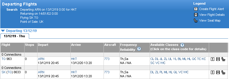 Due to change of class mapping from TG, reservations booked on SK codeshare in K-class on TG operated flights are updated with UN.