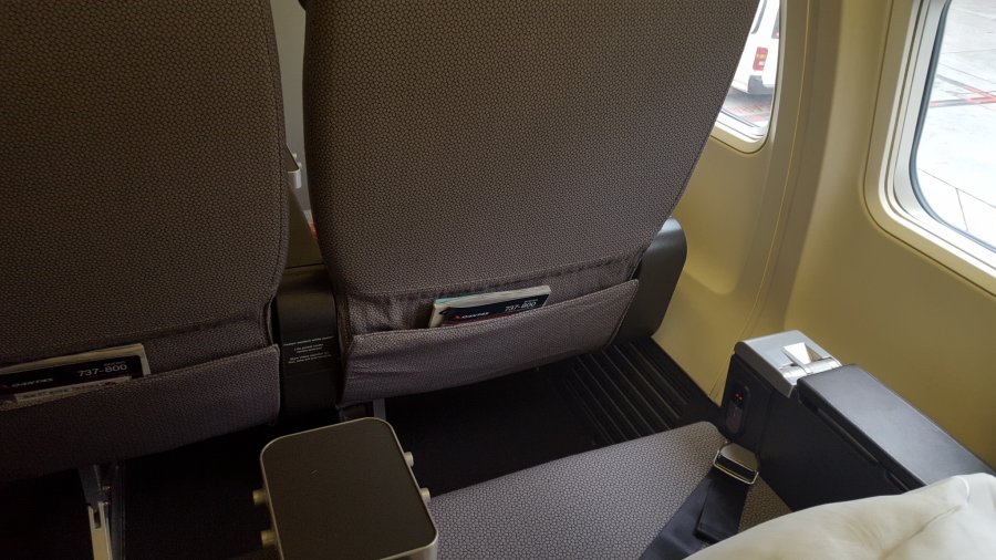 Stolen går att luta något och har även ett fotstöd man kan fälla ut. Ok för en såpass kort dagflygning även om jag föredrar Qantas lie flat i nya Domestic Business.