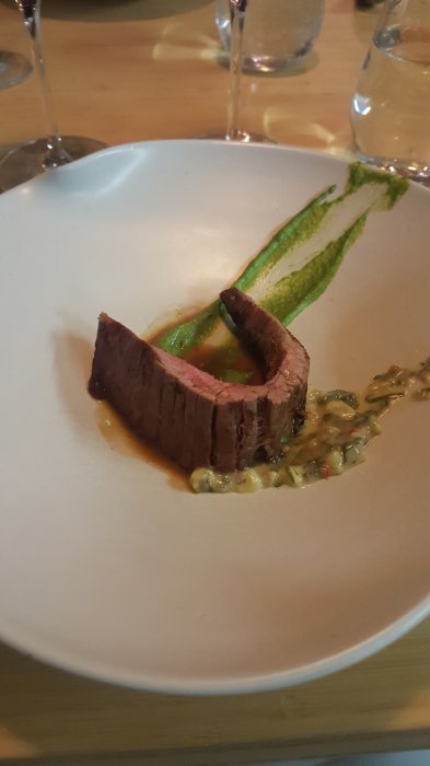 Sista varmrätten är kött. Inte så mört som jag förväntat mig, men det är uppenbart att intentionen att ge tuggmotstånd och det smakar väldigt bra.