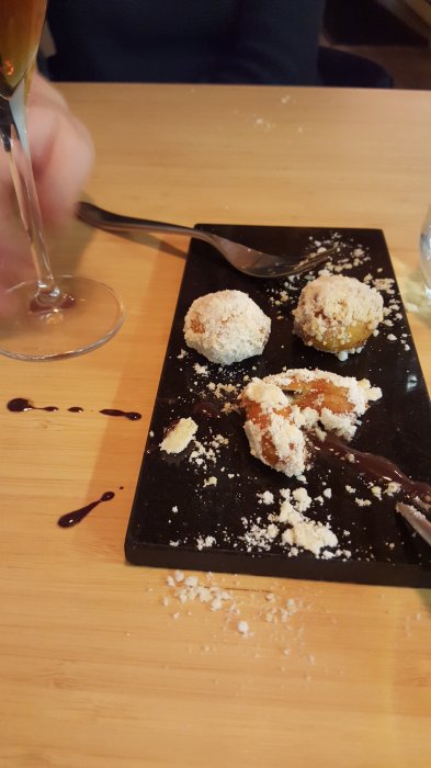 Vi fortsätter med Golden Egg - kvällens höjdpunkt. Ägg som tillagats i 60°c i 60 minuter som serveras med svamp reducerad till vegimite samt smörstekta svampar. Fantastiskt.