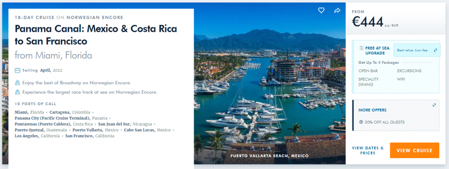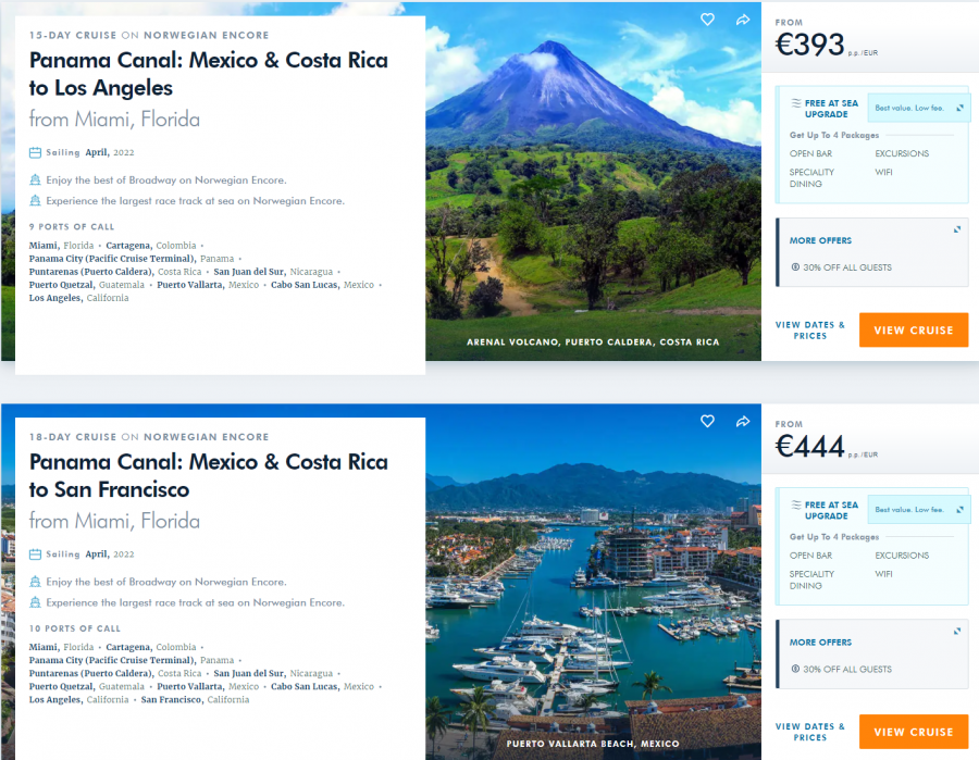 Helt sjuka priser för kryssningar via Panamakanalen 17e April 2022 med Norwegian Encore.