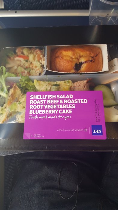 Jag var mer intresserad av att delge SAS av feedbacken. Även om variationen är dålig, så äter jag hellre lådan i Plus, än ett sockerkakssöt sirapsbröd med yoghurtfyllning på Lufthansa, som middag. Jag har egentligen inget emot plus-lådan, men mer variation och ett alternativ hade jag uppskattat.Stem med fødderne... Så vidt det er muligt flyver jeg med andre selskaber end SAS, på den måde slipper jeg for de horrible laxlådor...