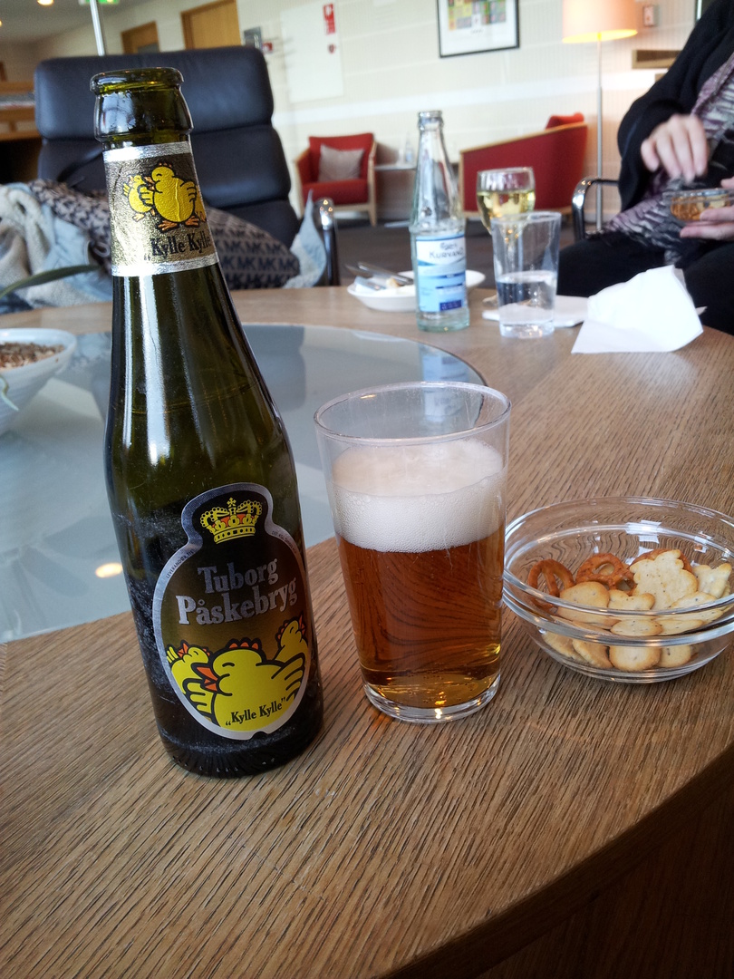 Hade ganska lång transfer så ett besök i flaggskeppsloungen stod högt på listan. Upp med guldkorten och upp för trappan till BC-hörnan. Under vistelsen blev det några glas vin och öl för att fira in semestern. Tuborg Påskebryg var en trevlig överraskning.