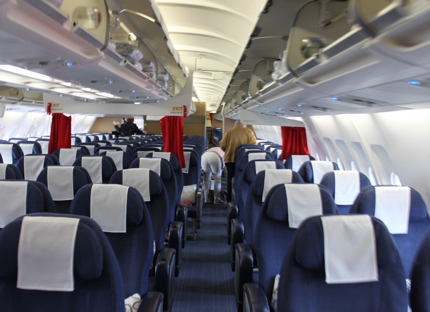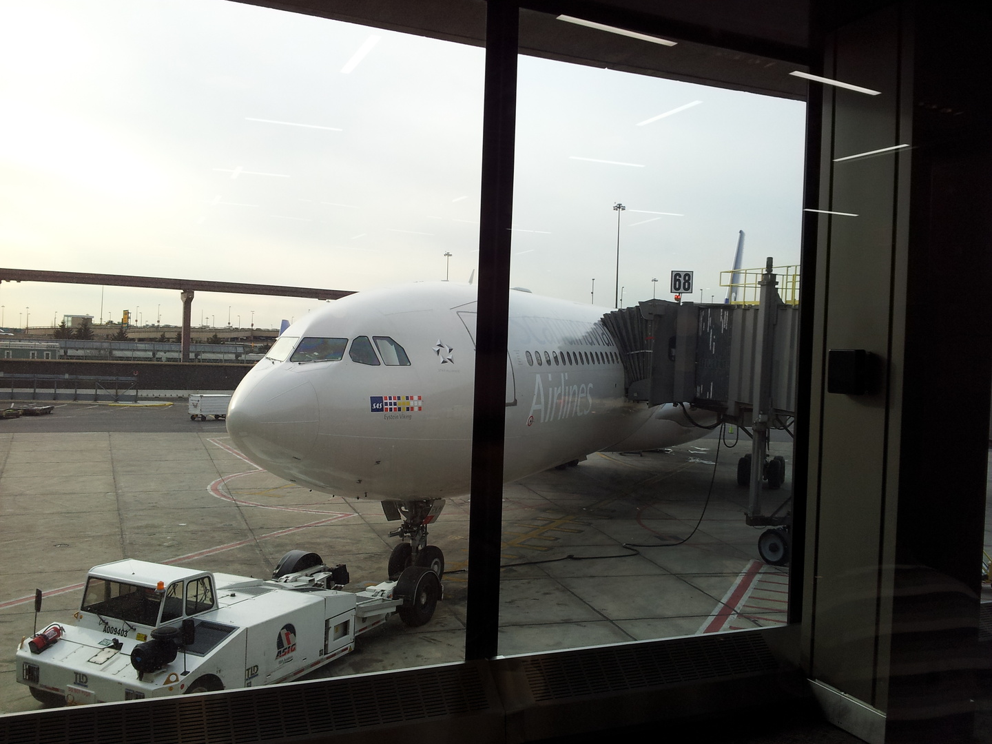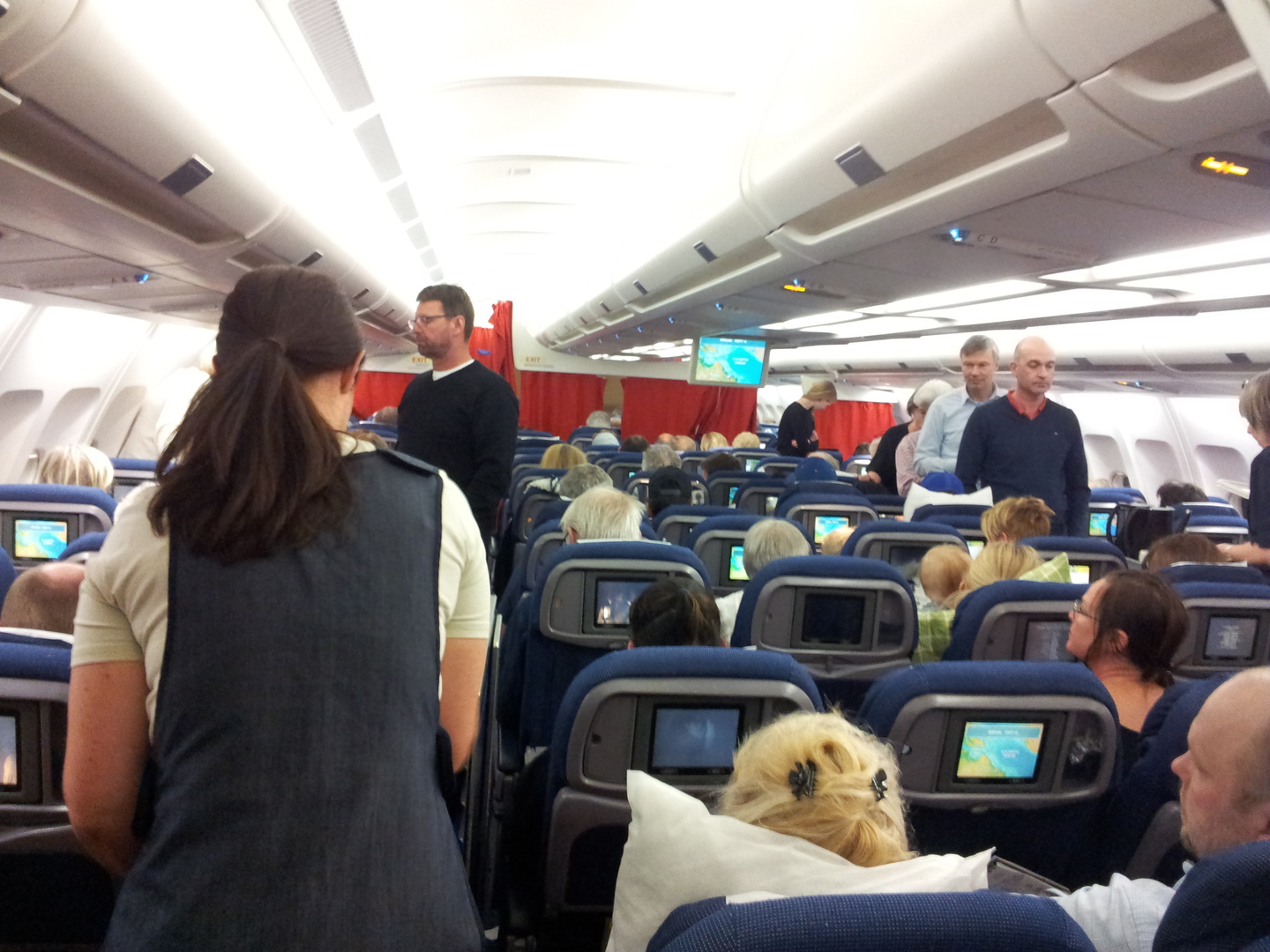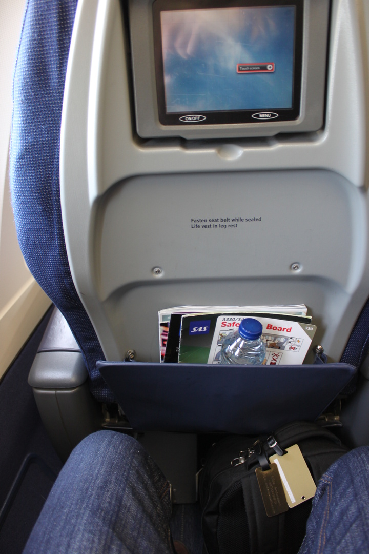 Go to gate visades tidigare än vad jag är van vid. Inte så konstigt eftersom jag innan endast flugit inom Europa med Sas. Passkontrollen gick smidigt och väl framme vid gaten visade vi våra boardingpass och visades in i en fålla. Där såg jag till min förtjusning att det blivit equipment change från A330 till A340 med Star Alliance-målning. Ett litet väntande i gaten innan det var dags att kliva ombord bland de första. Min Optiontown hade tyvärr inte gått igenom. Installerar mig snabbt på 15A i Plus och börjar utforska stolen. Märker att det går att luta den lite mer än ekonomistolar och att den är bredare. Konfigurationen är 2-3-2 jämfört med 2-4-2 i Go. Benstödet gillar jag. En kudde och filt som även används i Business Class låg på stolen. Som synes används skynke mot Go. Pluskabinen känns stor, men ändå lite privat. Under boarding syns tydliga spår av den svenska avundsjukan på de som passerar förbi till GO.