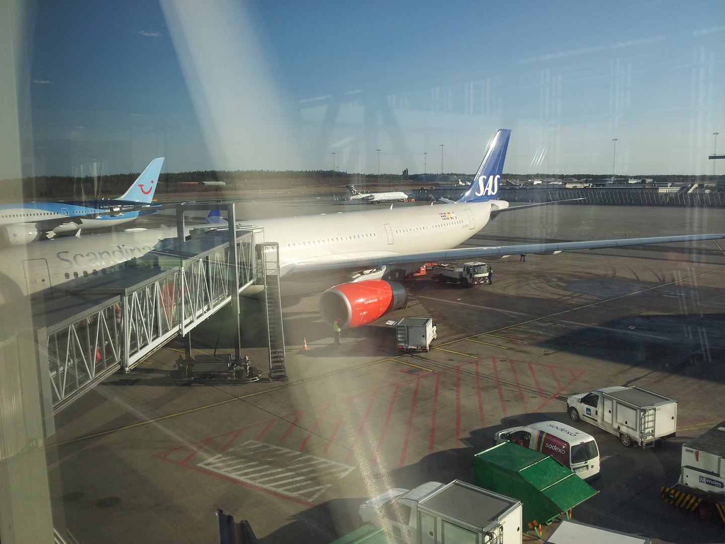 Efter att ha lämnat av tomma väskor i incheckningen blir första stoppet i Sas Lounge. Äter en lättare frukost och njuter av tystnaden. Det är skönt att för en gångs skull inte vara här vid halv 6 utan vid 8-tiden.