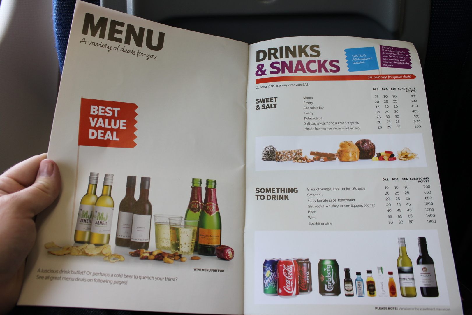 Studerade menykortet ett tag och lade upp en strategi för drickandet och snacksandet. Samma meny som inom Europa. Hade hoppats på lite mer variation i menyn då jag är lite trött på Plus-utbudet.